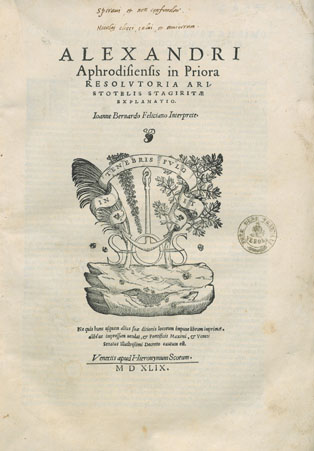 Version latine du Commentaire sur les premiers analytiques d’Aristote par Alexandre d’Aphrodise, 1549