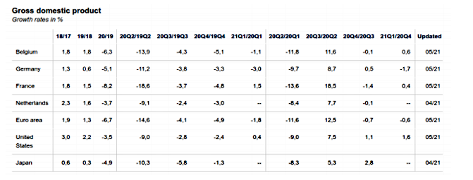 Dans son communiqué du 31 mai 2021, l’Institut des comptes nationaux de Belgique constate la chose suivante :