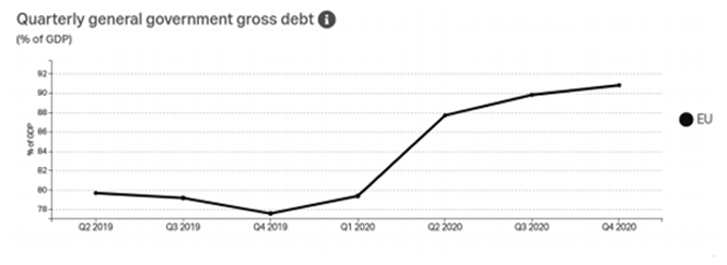 Pour maintenir la situation, les États impérialistes ont déversé des fortunes, à crédit. Leur niveau d’endettement a explosé. Voici les données pour l’Union Européenne.