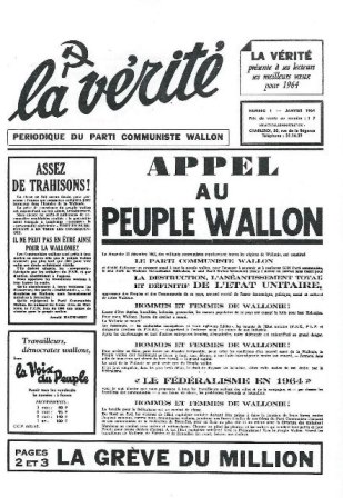 Le dimanche 22 décembre 1963, des militants communistes représentant toutes les régions de Wallonie, ont constitué LE PARTI COMMUNISTE WALLON et décidé d’adresser un pressant appel à tout le peuple wallon, pour l’engager à soutenir et à renforcer SON Parti communiste, le seul Parti de Wallonie véritablement fédéraliste, le seul Parti Wallon fermement résolu à mener un combat sans merci pour LA DESTRUCTION, L’ANEANTISSEMENT TOTAL ET DEFINITIF DE L’ETAT UNITAIRE, oppresseur des Peuples et des Communautés de ce pays, ennemi mortel de l’essor économique, politique, social et culturel de notre Wallonie.