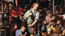 ALCHIMIE. Nom donné à la chimie du moyen âge au stade pré-scientifique de son développement. Les alchimistes cherchaient à transformer les métaux ordinaires en or ou en argent, à l’aide de la « pierre philosophale » aux propriétés « miraculeuses ». Ils s’efforçaient également de découvrir l’« élixir de vie », source imaginaire d’une jeunesse […]