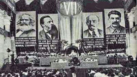 Toutefois, le fascisme ne cesse d’avancer ; après l’Italie en 1922 ce fut l’Allemagne en 1933, et la tendance à la guerre impérialiste prime de loin sur la vague révolutionnaire. C’est ainsi le rapport du bulgare Georgi Dimitrov sur l’offensive du fascisme qui est au cœur du 7e congrès de l’Internationale Communiste, qui commence à la fin juillet 1935.
