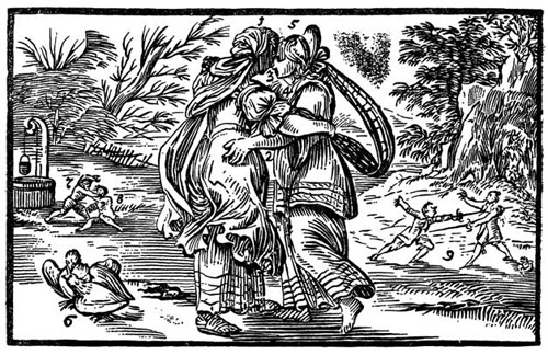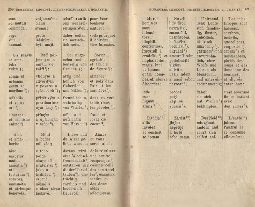 Les hommes sont faits pour s’entr’aider les uns les autres dans leurs besoins; qu’ils soient donc courtois (obligeants). Soyez doux (amiable) et affable de visage (jovial) [1], civil et honnête dans vos manières et dans vos moeurs [2], gracieux et véritable dans vos paroles [3], franc et loyal de coeur [4]. Aimez, si vous souhaitez être aimé; ainsi, il se fera une amitié mutuelle [5], comme celle des tourterelles [6] (qui s’aiment tendrement), unanime, paisible et réciproquement affectionnée. Les hommes fantasques (étranges, bizarres) sont haïs de tout le monde; ils sont envieux, incivils (grossiers), querelleux, colériques [7] (irascibles), cruels [8] et implacables, plutôt des loups et des lions que des hommes, et ils sont divisés entre eux-mêmes; c’est pourquoi il arrive souvent qu’ils se battent en duel [9]. L’envieux [10] en veut à tout le monde et se perd lui-même.