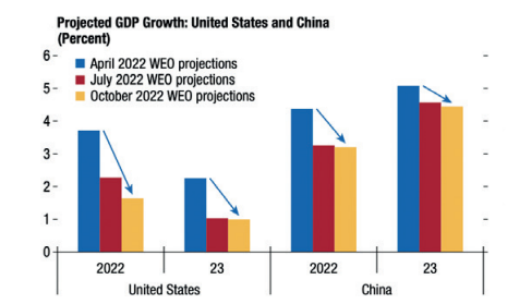 La croissance dans les trois plus grandes puissances économiques, les États-Unis, la Chine et la zone euro, restera au point mort. De façon générale, les chocs de cette année vont rouvrir les blessures dont souffrait l’économie, qui ne s’étaient que partiellement cicatrisées après la pandémie. En somme, le pire reste à venir et pour beaucoup, 2023 aura l’effet d’une récession. » (Alors que l’horizon s’assombrit, les décideurs doivent garder le cap)