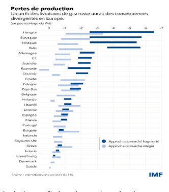 Le pays le plus concerné est bien entendu l’Allemagne, qui avec le gazoduc Nord Stream 2 escomptait un renforcement de son approvisionnement en gaz russe. Toute cette perspective est bloquée désormais, puisque le gazoduc n’est pas mis en service, et qu’il faut qui plus est remplacer la source russe dans son ensemble puisque Nord Stream 1 est censé ne plus servir à rien.