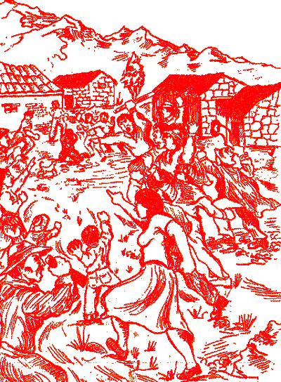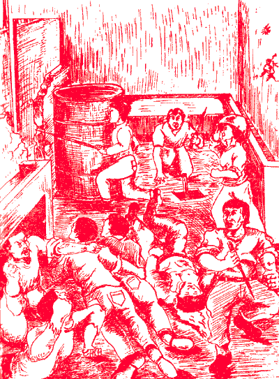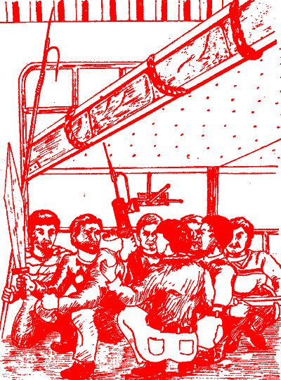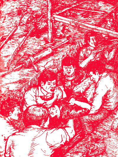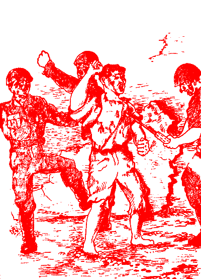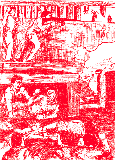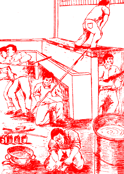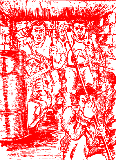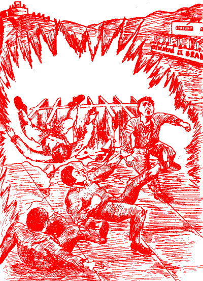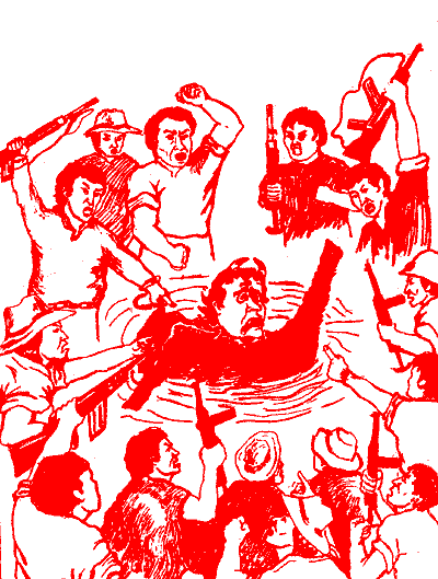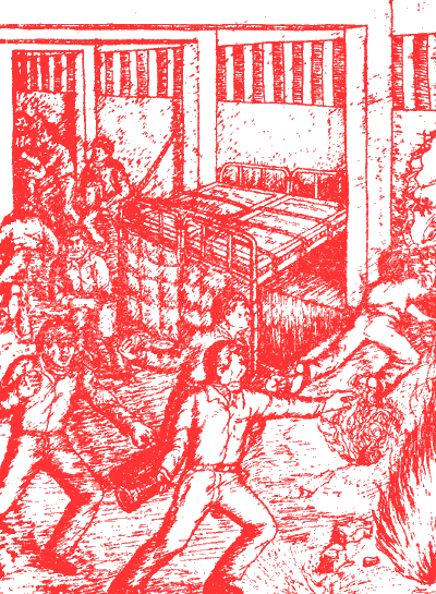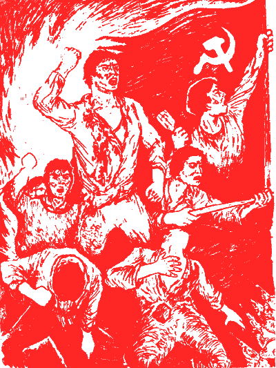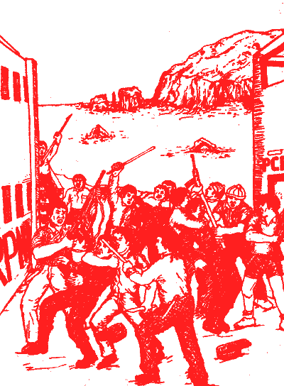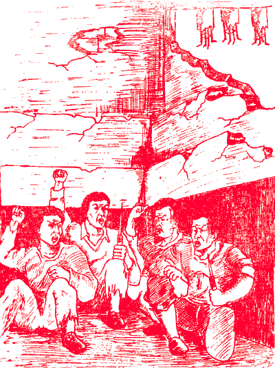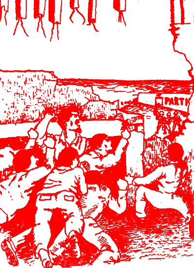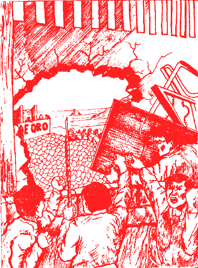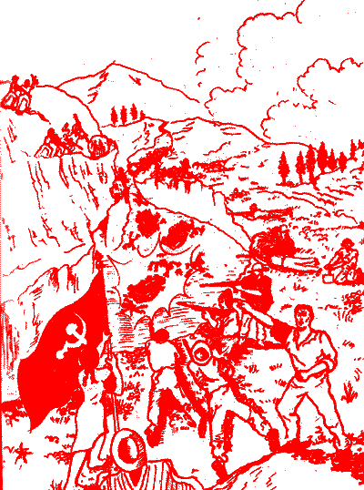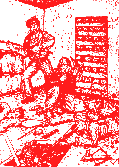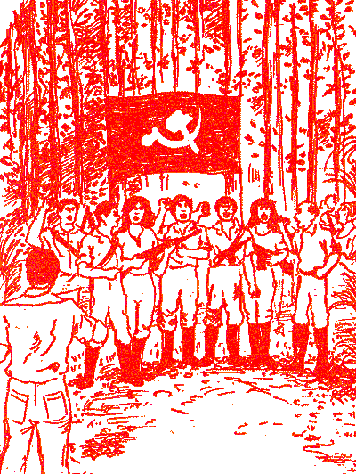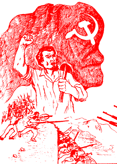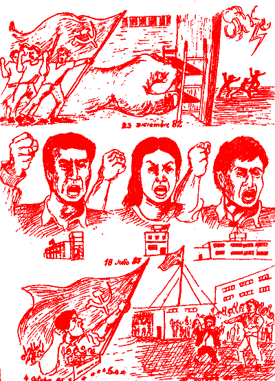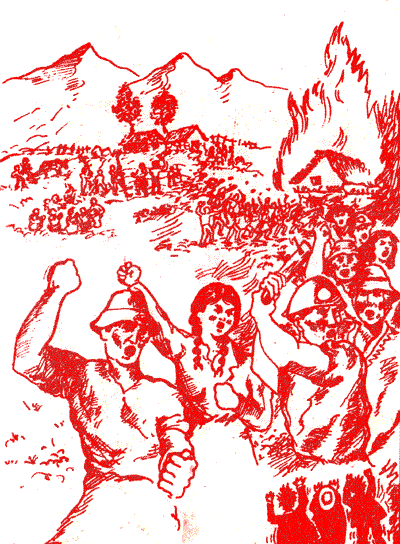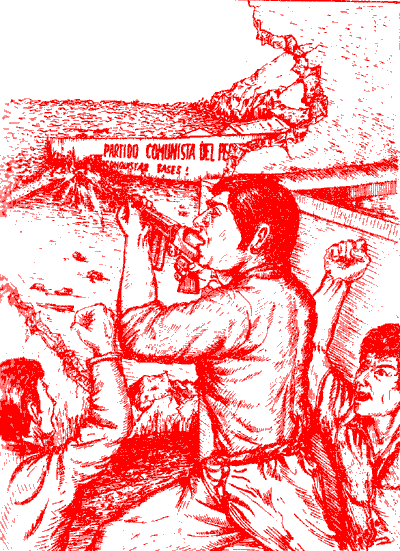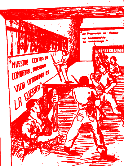 Voici deux séries d’images datant des années 1980 et reflétant l’idéologie du Parti Communiste du Pérou. La première retrace la guerre populaire, la seconde la révolte dans les « tranchées de combat », c’est-à-dire les prisons, en l’occurrence de Callao, Lurigancho, et d’El Frontón. Cette révolte, qui eut lieu le 19 juin 1986, a coûté la vie à 300 camarades.