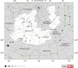De – 3 942 jusqu’à – 1 793, ce fut l’étoile Thuban, de la constellation du Dragon (en tant que α Draconis), à 0,1° de distance du pôle céleste en – 2 775.