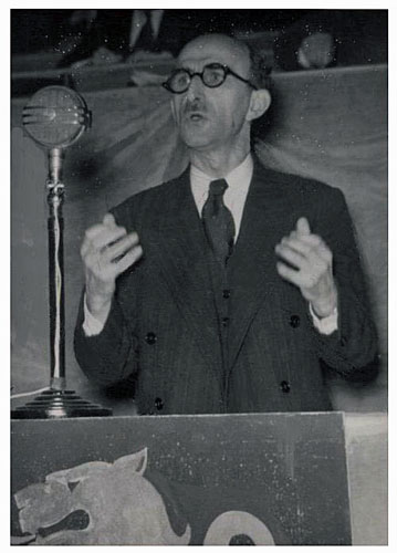 Il m’est arrivé de feuilleter, en pensée, l’histoire de notre Parti et chaque fois, dès la première page, à mes yeux apparaissent une image familière et chère : du costume un peu fatigué surgit l’ovale précis du visage, sous le front dégagé, derrières les verres, un regard pénétrant qu’éclaire par moment une flamme narquoise, des traits burinés par la tension constante des lèvres austères amis qui, volontiers, esquissent un sourire discret, amusant comme un bon mot.
