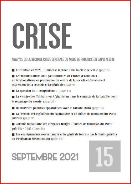Un aspect essentiel dans la lutte pour comprendre la seconde crise générale est, bien entendu, l’expérience historique. En ce sens, le document du Parti-Guérilla du Prolétariat Métropolitain italien, datant de 1983, est très utile de par ses thèses sur ce qu’est le capitalisme en crise et sur comment les communistes doivent appréhender cela. Il n’est nullement ici question de modèle, bien entendu ; de toutes manières, Crise est un outil, ayant comme fonction de présenter, d’inspirer, d’expliquer. Quant aux réponses pratiques, elles relèvent toujours des avant-gardes communistes, dans leur affirmation de la rupture, pour le Communisme.