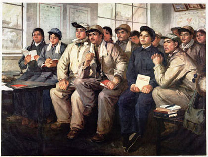 Dans les villes, ils se sont opposés à la ligne du président Mao consistant à s’appuyer sur la classe ouvrière et à procéder à la transformation socialiste de l’industrie et du commerce capitalistes, et ils ont battu le rappel en faveur de la théorie révisionniste de coopération de classes ; de plus, profitant de la position de supériorité que la bourgeoisie détenait dans les secteurs culturels, ils ont recruté un ramassis de renégats et d’agents secrets pour exercer sans vergogne sur le prolétariat une dictature contre-révolutionnaire dans le domaine de la culture, afin de préparer l’opinion publique à la restauration du capitalisme.