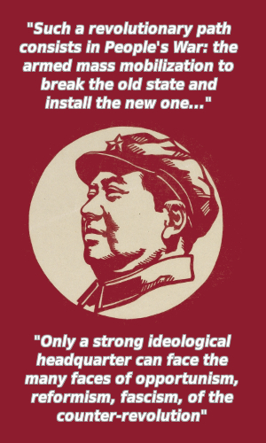 Such a revolutionary path consists in People’s War: the armed mass mobilization to break the old state and install the new one, carrying the revolutionary program of New Democracy in the semi-feudal semi-colonial countries, of Socialism in the capitalist countries.