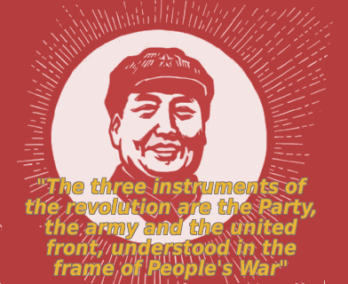 6. The three instruments of the revolution are the Party, the army and the united front, understood in the frame of People’s War as the universally valid military theory of the international proletariat. Invincibility of the People’s War is inevitable as it represents the new against the ancient, as obligatory resolution of an antagonistic contradiction.
