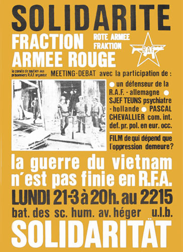 Affiche du Comité de soutien aux prisonniers de la RAF appelant à un meeting de solidarité à l’ULB