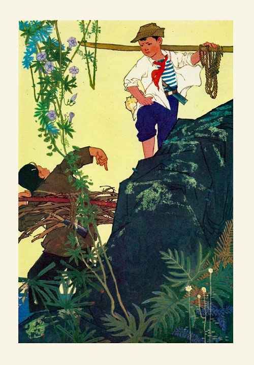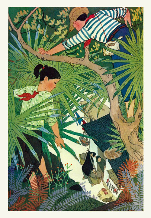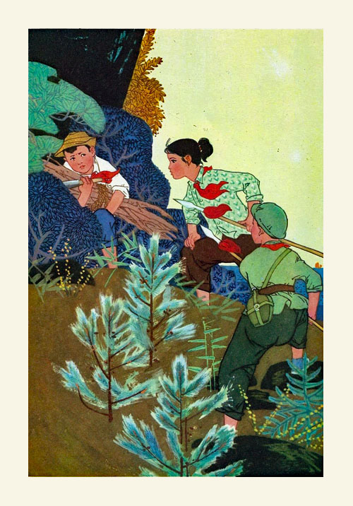 18 A ce moment, les miliciens, dirigés par Oncle Li Tchen, sont à la recherche des trois enfants. Guidés par le son de la conque, ils arrivent rapidement sur les lieux. Siao-po leur raconte comment il est tombé dans le piège de la femme de l’ancien despote. Alors Oncle Li lui dit gravement : « Le serpent venimeux n’est pas engourdi. Aujourd’hui, vous avez failli être mordus par lui. Restez toujours vigilants, mes enfants ! »