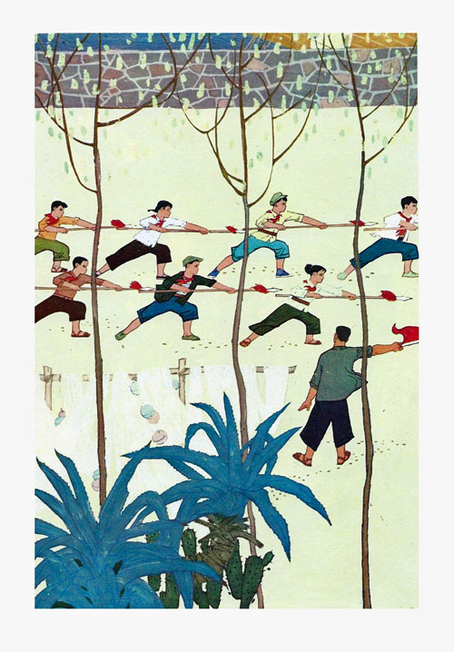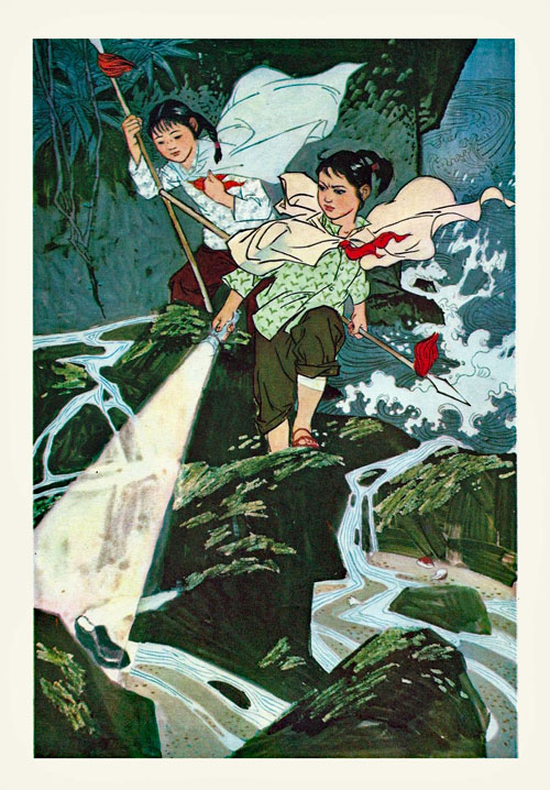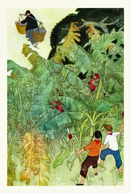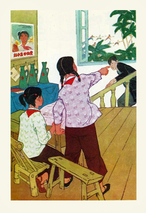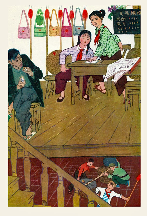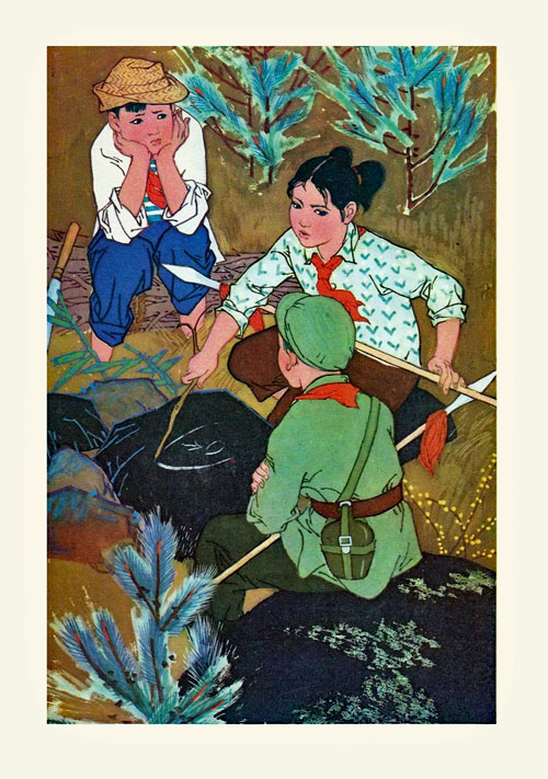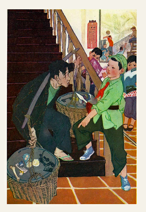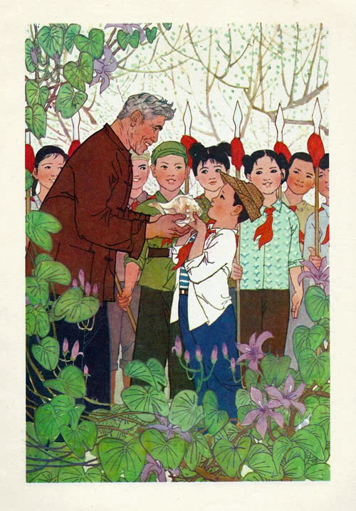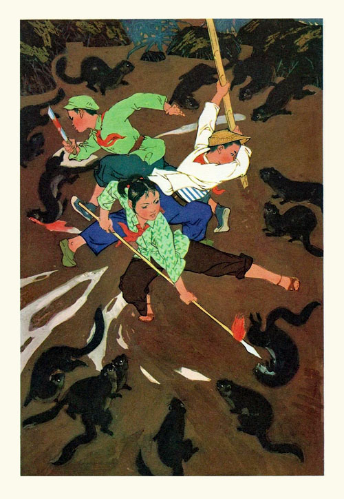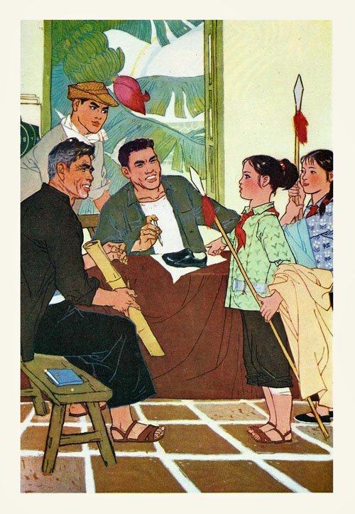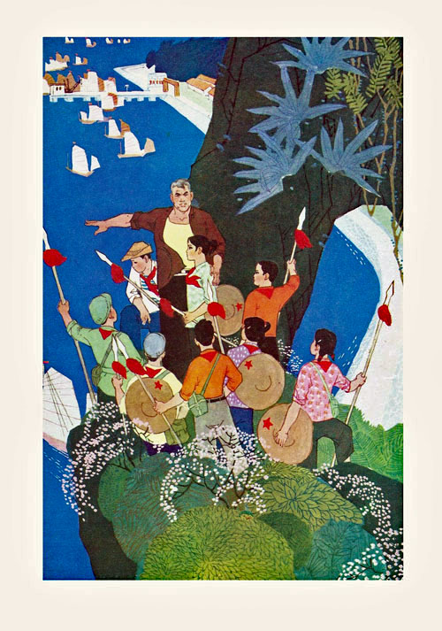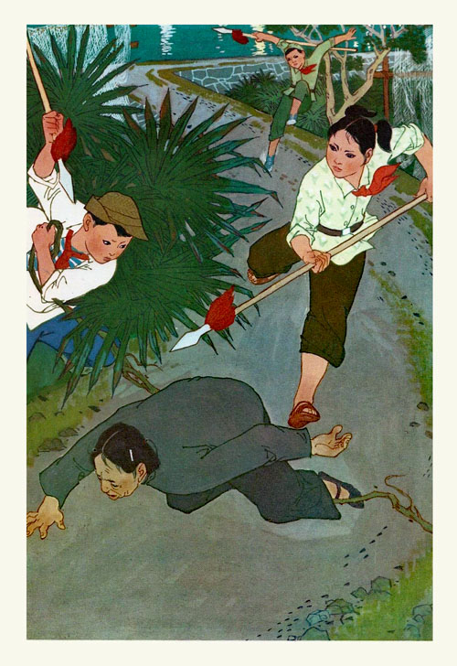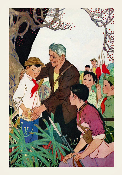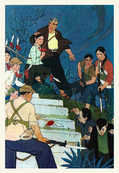 4 Il explique aux enfants : « Dans l’ancienne société si ténébreuse, c’étaient les propriétaires de pêcherie despotes qui faisaient la loi dans nos villages où ils exerçaient une tyrannie sans nom. Sur ce Tertre de la Trompe d’Éléphant, de connivence avec des réactionnaires kuomintaniens, un grand propriétaire despote a fait massacrer plusieurs pêcheurs qui avaient refusé de payer des impôts… » Au récit de Li, une haine implacable contre les ennemis de classe s’allume dans le cœur des enfants.