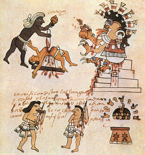 Pour cette raison, le chamanisme de l’empire inca était tempéré, celui des Aztèques entièrement débridé. Les sacrifices humains comptaient des formes très diverses (pendaison, écorchement afin que les prêtres se revêtissent de la peau, crémation, enfouissement, etc.), dont le fameux arrachage du coeur à un sacrifié encore vivant. Cela avait une fonction chamanique : le sang versé était un don aux dieux.
