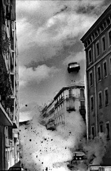 Envolée de la Dodge Dart GT 3700 de Carrero Blanco : image extraite du film « Operación Ogro », de Gillo Pontecorvo sorti en 1979