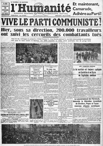 L’énergie et l’ampleur de la riposte faite dans tout le pays par le prolétariat aux menées fascistes, la combativité admirable des ouvriers parisiens luttant pendant des heures contre la police, élevant des barricades pour résister aux charges ; les multiples exemples d’initiative donnés par les organisations du Parti au cours de ces journées pour mobiliser les masses et les entraîner à l’action, montrent éloquemment les énormes possibilités qui nous sont actuellement données pour développer l’action de masse contre la bourgeoisie et ses bandes policières ou fascistes.