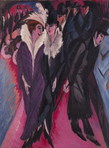Il ne s’agit donc que d’une esthétique ; on est déjà dans l’art abstrait, dans l’art pour l’art dans une version rejetant toute compréhension du monde. C’est en ce sens qu’il faut comprendre la célébration bourgeoise pour Die Brücke. Ce n’est que sa propre décadence que la bourgeoisie soutient, et la série de Ernst Ludwig Kirchner consacrée aux rues de Berlin marquent absolument cette auto-fascination, déjà présente en France avant même la Belle époque.