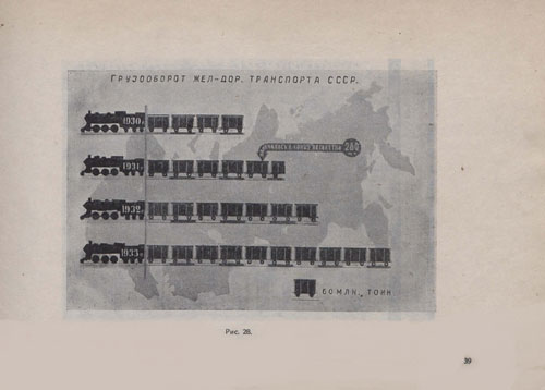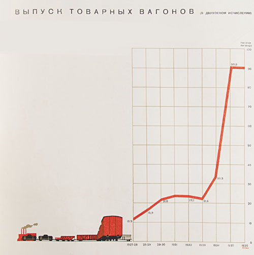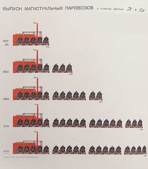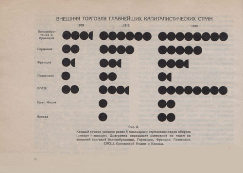 « figures qui ne soient pas sèches et ennuyeuses sous la forme de colonnes et de tables, mais sous la forme de figuratif ou diagrammes d’image qui sont en mesure d’intéresser chaque travailleur en Union soviétique comme à l’étranger. »