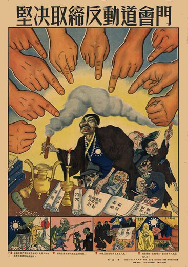 Cela aboutira, le 20 février 1951, au Règlement sur la suppression des éléments contre-révolutionnaires, visant spécifiquement les bandits, les despotes locaux, les services secrets du Guomindang, des dirigeants des organisations réactionnaires, les sociétés secrètes.