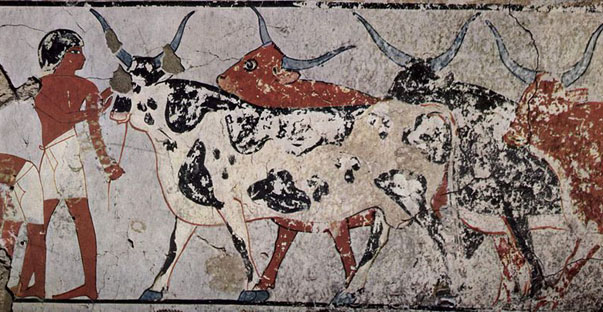 Groupe de bovins, en Égypte antique, vers 1400 avant notre ère