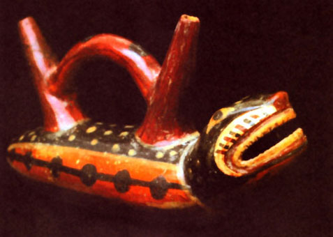 Bouteille en céramique en forme de serpent de la civilisation de Lima (entre 100 et 650 de notre ère), Pérou
