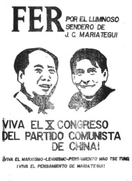 C’est la raison pour laquelle le Frente Estudiantil Revolucionario (Front Étudiant Révolutionnaire) constitué en 1973 avait comme mot d’ordre Por el sendero luminoso de Mariátegui, c’est-à-dire « pour / par le sentier lumineux de Mariátegui ».