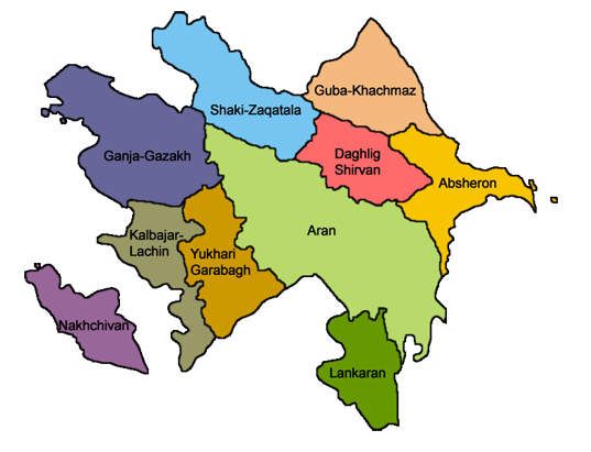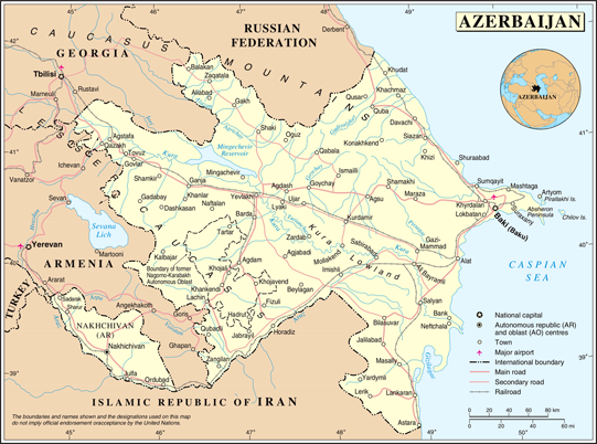 Une carte de l’Azerbaïdjan, avec la situation géographique du Yukhari Garabagh (ou Nagorny Karabagh)