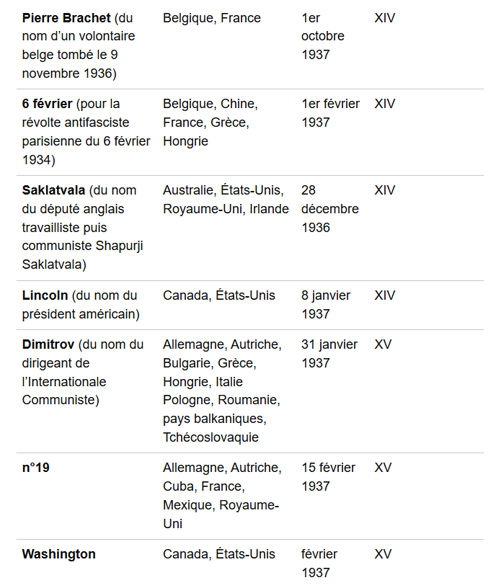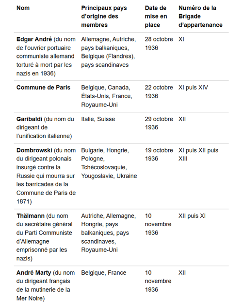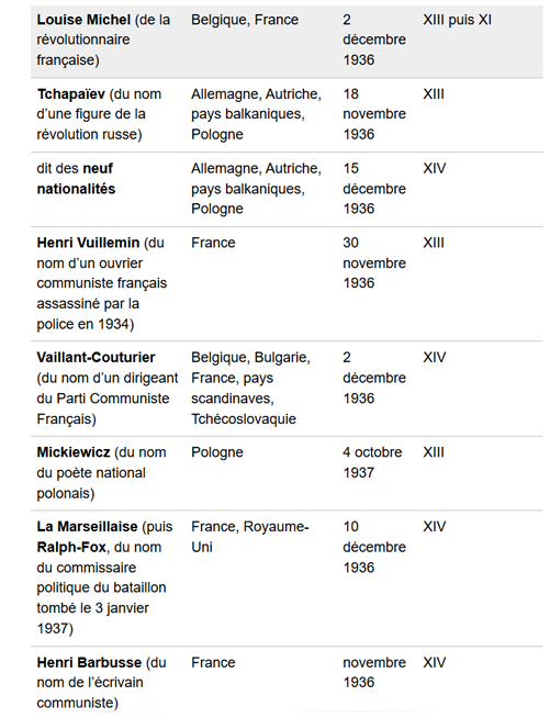 À partir du 18 septembre 1936, l’appel à rejoindre l’Espagne antifasciste fut systématisée par l’Internationale Communiste, avec Paris comme base de recrutement, les Brigades Internationales se mettant en place le 9 octobre 1936. La République espagnole leur laissa les nombres 11 à 15 au sein de l’armée populaire.