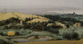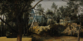 Un trait subtile est la partie à droite, avec une église, qu’on devine dans un endroit à la fois plutôt sauvage et en même temps plutôt idyllique, on ne sait trop. Si la partie gauche était des Pays-Bas, au sens strict, et pourrait aller avec la Belgique ensuite, celle à droite est pour le coup véritablement néerlandaise, bien ancrée dans les traditions germaniques. Cela préfigure le romantisme allemand.
