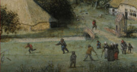 L’importance du jeu se retrouve régulièrement chez Bruegel, ce qui est normal pour deux raisons : d’une part, c’est un trait populaire, ensuite les Pays-Bas ont développé de manière massive les jeux, ce qui reflète là aussi la nouvelle humanité qui a bien davantage les moyens d’agir.