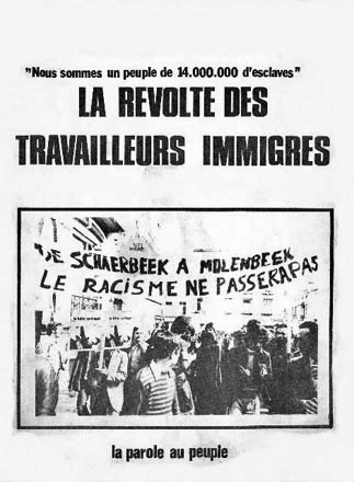 A côté des Belges antiracistes s’y trouvent des immigrés de différentes nationalités − pour le moment, surtout des Tunisiens, des Marocains et des Turcs − qui discutent de leurs problèmes d’immigrés. Là se forge la conscience du « nous sommes tous des immigrés », moment transitoire entre celui de la conscience nationale, développée par les mouvements autonomes, et celui de la conscience universelle, un moment dans l’édification, au travers de la lutte, de l’unité de la classe ouvrière en Belgique.