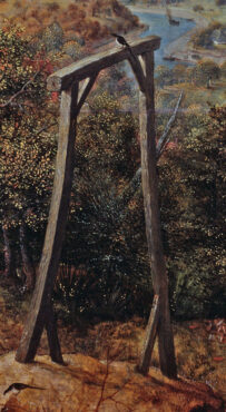 Soit Bruegel a raté le gibet, soit il l’a fait exprès. S’il l’avait raté, il aurait pu le refaire, et il a nécessairement vu qu’il y avait un souci dans la représentation, ou de toutes façons, cela lui aurait été fait remarquer.