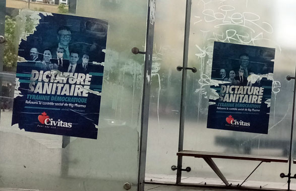 Affiches du mouvement catholique intégriste français Civitas actuellement dirigé par le militant belge d’extrême droite Alain Escada, ex-président de l’organisation catholique ultra « Belgique et Chrétienté ».