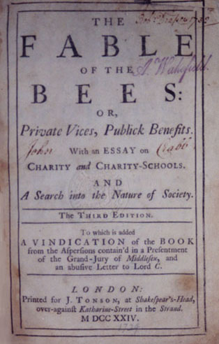 La fertile ruche était remplie d’une multitude prodigieuse d’habitants, dont le grand nombre contribuait même à la prospérité commune. Des millions étaient occupés à satisfaire la vanité et l’ambition d’autres abeilles, qui étaient uniquement employées à consumer les travaux des premières. Malgré une si grande quantité d’ouvriers, les désirs de ces abeilles n’étaient pas satisfaits. Tant d’ouvriers, tant de travaux, pouvaient à peine fournir au luxe de la moitié de la nation.