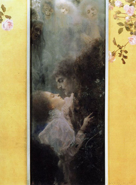 Dans les œuvres suivantes, Gustav Klimt réussit admirablement bien à conjuguer la représentation et la décoration allant avec celle-ci, pour former une atmosphère pratiquement typique. On a ici affaire à une décoration typique, propre à une ambiance, une atmosphère.