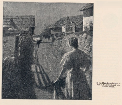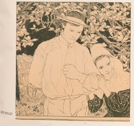 Cette position est d’autant plus frappante que le numéro de Ver Sacrum est accompagné de toute une série d’illustrations du peintre tchèque Hanuš Schwaiger (dont le père était juif), avec soit des images de contes populaires, notamment slaves, soit des dessins réalistes.