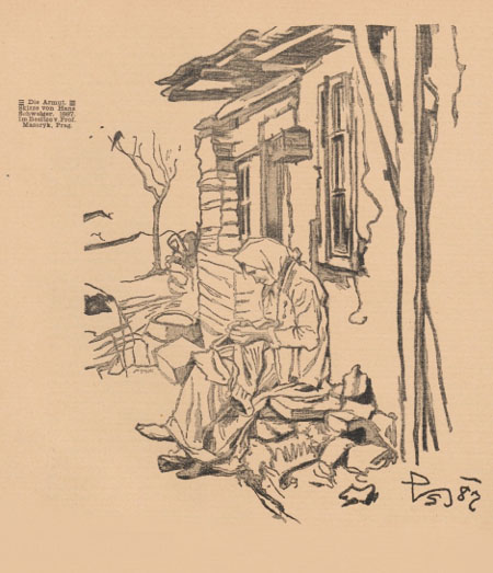 L’image ci-dessous montre par exemple « la pauvreté » et il est précisé que le dessin a été acheté par le professeur Masaryk, très certainement pas moins que Tomáš Masaryk, le grand théoricien national-bourgeois tchèque et premier président tchécoslovaque une vingtaine d’années plus tard.