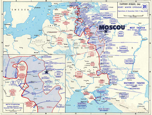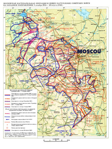 L’armée rouge triompha avec tout d’abord une ligne défensive (30 septembre – 4 décembre 1941) suivie d’une contre-offensive (5 décembre 1941 – 7 janvier 1942) et même d’une offensive des troupes soviétiques (7 janvier – 30 mars 1942).