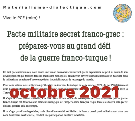 Le développement de l’économie de guerre se renforce en conséquence sans entrave pour le moment, et par nécessité, il va être constitué à un moment ou un autre un adversaire pour mobiliser en faveur de la guerre, de l’appareil militaro-industriel et du régime bourgeois en France qui se militarisera en conséquence.