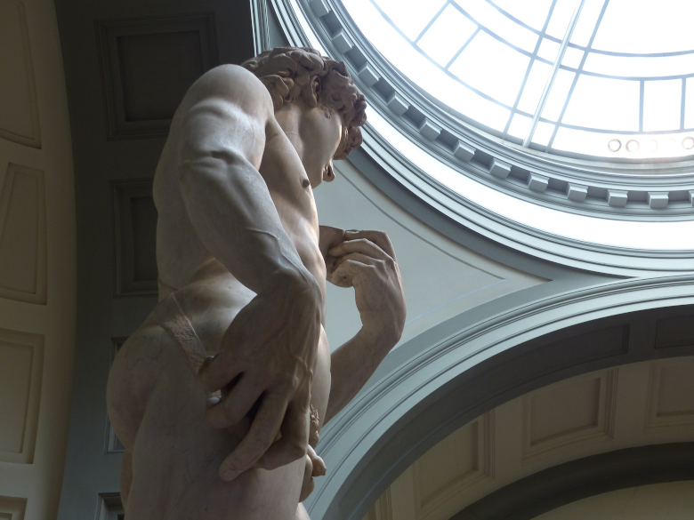 Michel-Ange a sculpté le David de septembre 1501 à mai 1504 ; c’est une statue de marbre qui fait plus de quatre mètres. Sa gloire tient surtout à ce qu’au moment de sa réalisation, Florence est une Cité-État. L’oeuvre est alors placée devant le Palazzo Vecchio, le siège municipal de Florence, et est censé symboliser la détermination de l’esprit « républicain ».