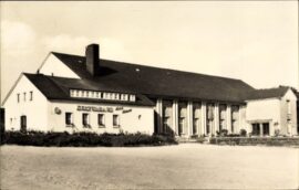 Voici la Maison de la culture Martin Andersen Nexö à Rüdersdorf, qui existe toujours et dont la réussite architecturale impressionne même aujourd’hui les commentateurs bourgeois. Le bâtiment fut inauguré en 1956, en présence de la veuve de Martin Andersen Nexö.