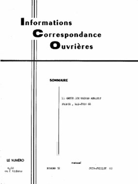Le groupe le plus important fut cependant Informations et Correspondance Ouvrières, qui a existé de 1958 à 1973 et dont voici la plate-forme :