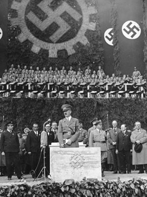 Ce fut d’ailleurs Fritz Thyssen qui permit au parti nazi d’acheter son siège central à Munich, quant à l’association nationale des industriels – chapeautant 1000 unions industrielles, elle avait publié en décembre 1929 un manifeste intitulé pas moins que « Élévation ou effondrement ? » (Aufstieg oder Niedergang ?). En 1933, elle fera une grand donation financière à Adolf Hitler, instaurant le soutien officiel au régime dans ses rangs, avec y compris le salut nazi.