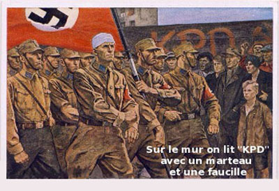 En fait, c’est une course, où le national-socialisme tente de déborder le matérialisme dialectique, de le prendre de vitesse, en présentant des choses qui ont l’apparence d’un progrès, mais n’aboutissant qu’à réimpulser le capitalisme.