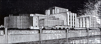 Le côté hangar du projet de Le Corbusier l’amena à être rejeté, revenant trop au formalisme constructiviste des années 1920, ce qui rendit l’architecte très mécontent, au nom d’un esprit prétendument d’avant-garde.