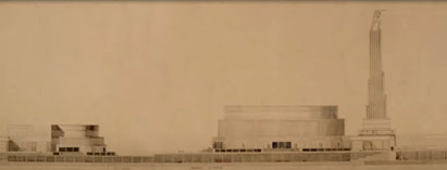 Le projet de Boris Iofane n’était quant à lui pas d’esprit symétrique et avait plus d’allant, avec notamment un monument et l’idée d’un espace marqué entre les bâtiments.