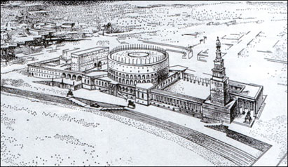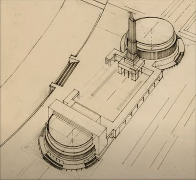 L’oeuvre de Hector Hamilton marqua les esprits, mais elle avait un souci : elle était fonctionnaliste en ce qui concerne les déplacements. Il y avait bien de multiples entrées, mais aucune place à l’extérieure où se rassembler ; il devait même y avoir des voies pour automobiles souterraines sous le Palais.