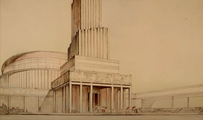 Un concours fut ainsi lancé pour le projet d’un Palais des Soviets. Une telle idée de concours pour un grand projet s’était déjà réalisée en 1922, avec un appel pour un « Palais du travail ». Le gagnant fut Noi Trotsky, alors que les frères Vesnine (Alexandre, Victor et Leonid) présentaient alors la première oeuvre « constructiviste » en architecture. Le projet de Palais fut rapidement abandonné.